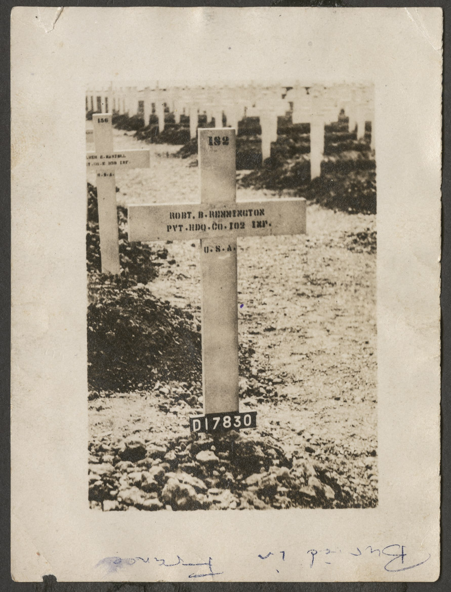 – George Seymour Godard to Mrs. Minnie Remington regarding her son Robert Bonner Remington’s war record and death in France on May 1, 1918.